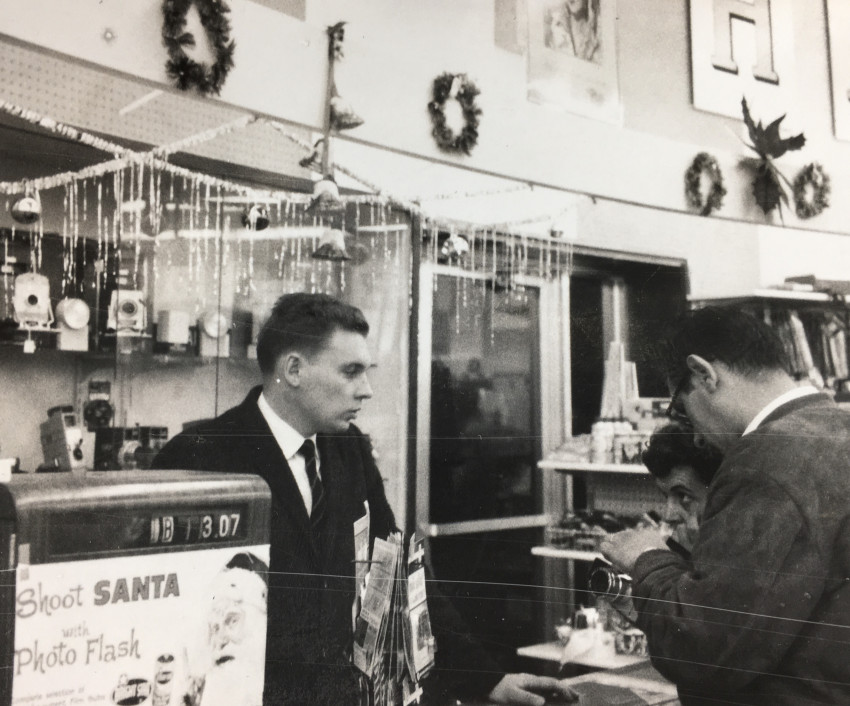 8 Early Polaroid photos taken in a the Camera store (or department)--w. Polaroid cameras on display. (Some edgewear.)