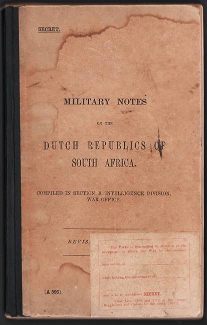 Document number A 596 marked SECRET on cover. Regulations regarding the custody and transfer of secret documents pasted on inside front cover.