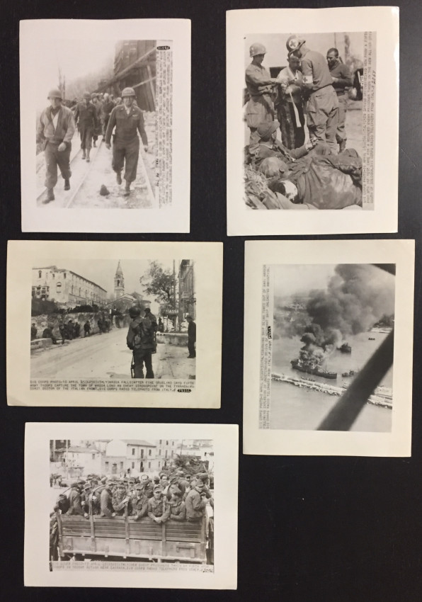 Good example of photographs created using the Army’s radio tele-photograph electronic-transmission system, stamped on verso. 29 images. Light toning, soiling, edgewear, but overall acceptable.
