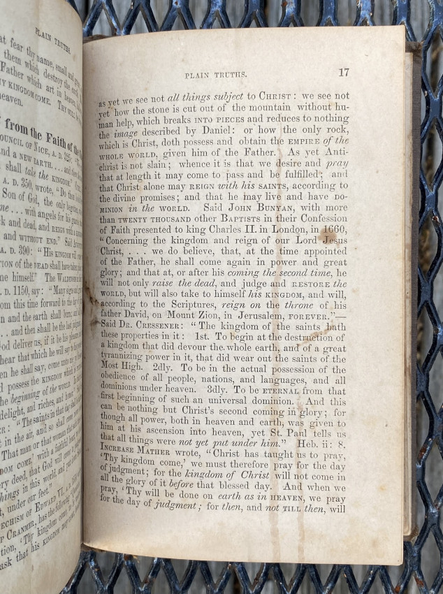 A valuable and quite rare autobiography from Millerite Hiram Munger: of value ‘to the student of Millerism because of the author's first hand knowledge of [the Millerite] Camp events’ (Francis D. Nichol “The Midnight Cry). Kaplan: American Autobiographies 4159:"Munger tells of his religious development and his saw mill business in Massachusetts." The work was evidently quite popular as it went through a number of editions – a third edition was published in 1881. This first remains rare.