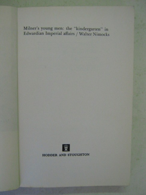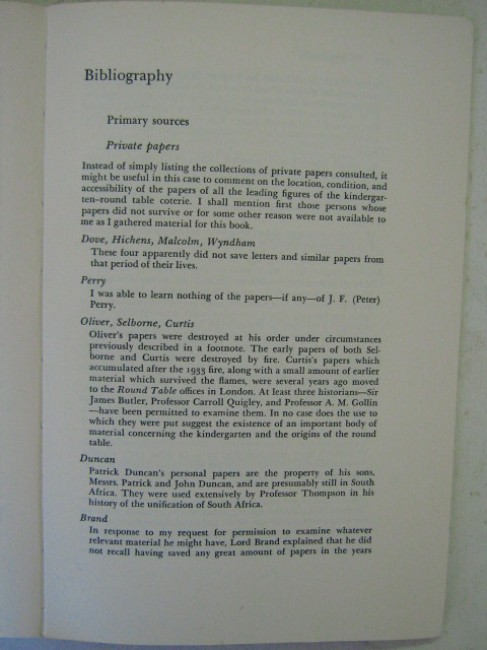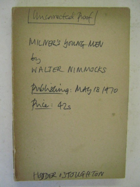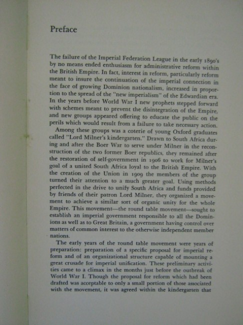 Scarce \'Publisher\'s Uncorrected Proof\' copy, softcover, with a foreword by the aouthor dated Aug.10, 1967. Chapter 2 deals specifically with events leading up to the Boer War, and notes on Milner\'s outlook on the situation in South Africa, which he described as \"...the weakest link in the imperial chain...\" and \"there must be one flag, the Union Jack, but under it equality of races and languages... as for the Boer himself, provided I am once sure of having broken his political dominance, I should be for leaving him the greatest amount of individual freedom. First beaten, then fairly treated, and not too much worried on his own \'plaats\' in his own conservative habits, I think he will be peaceful enough.\" Chapters as well on the Draft Constitution, the Round Table Movement and its failure, the Selborne Memorandum, and Milner\'s Retirement. Plain brown publisher\'s wrappers with cover title written by hand, in good condition (spine worn), with bibliography and index, total 234pp.