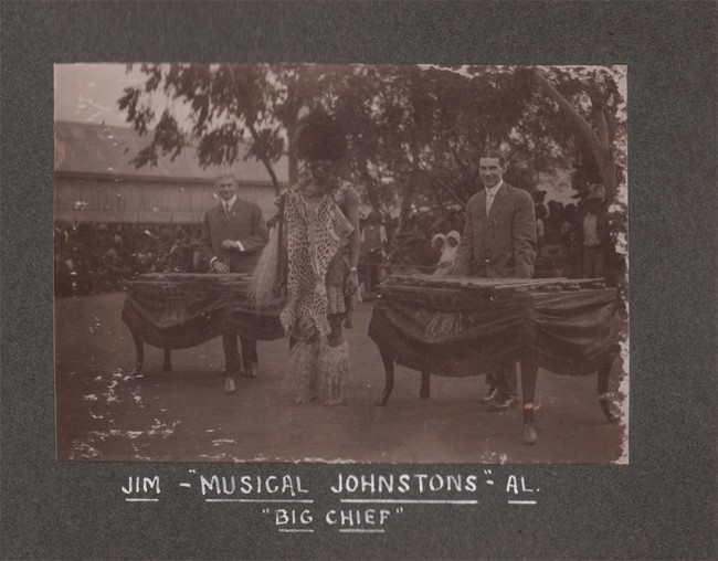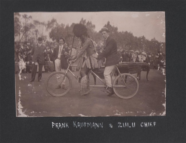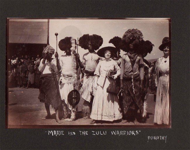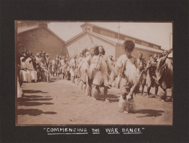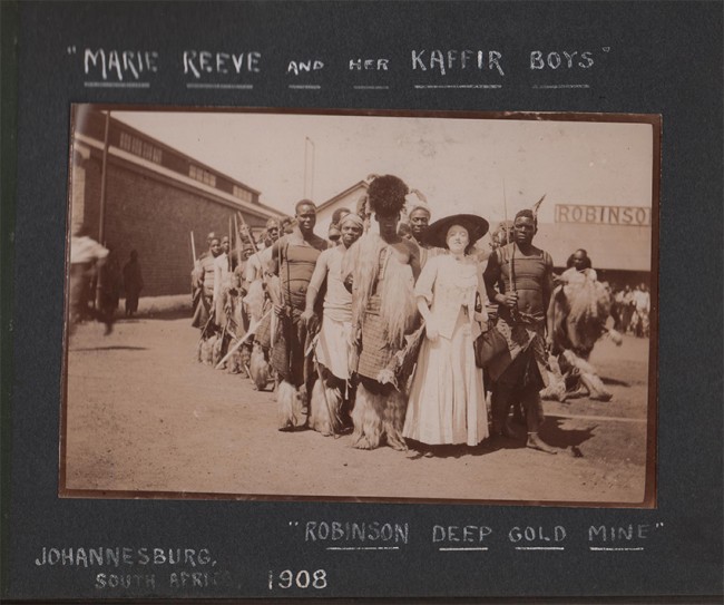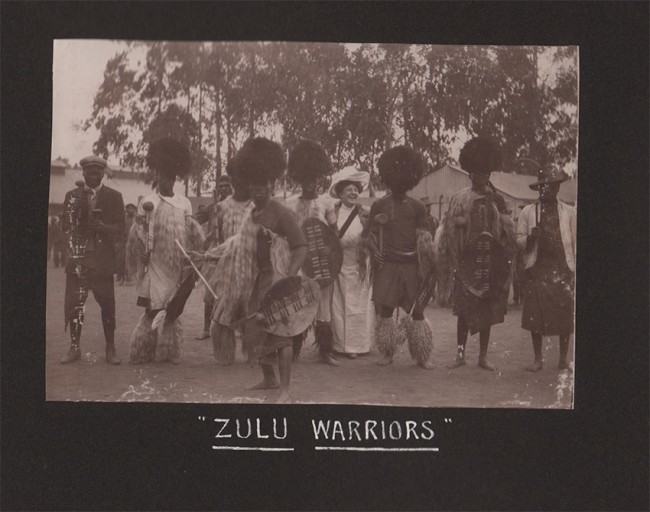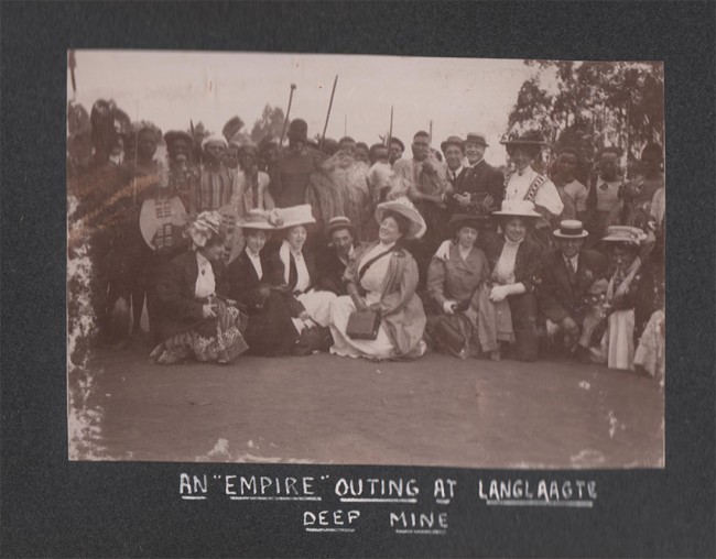 There are photographs of the following: Marie Reeve with the miners Several of Frank Kaufmann One of Arthur Arnold Many of Zulu Warriors and the Zulu War dance One photograph depicts an Empire outing at LangLaagte Deep Mine.