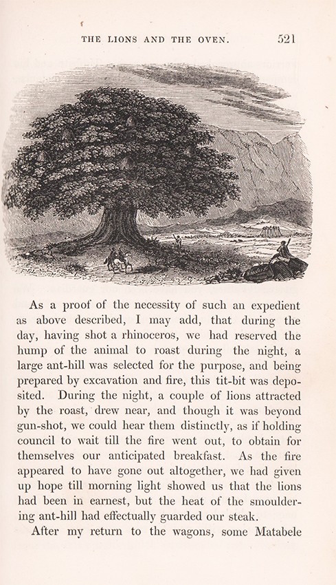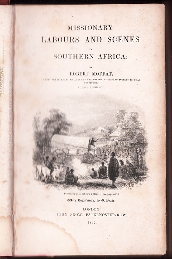 The coloured frontispiece of the Kuruman Station is one of very few illustrations printed by the Baxter process in books of African interest. This plate was also sold separately as a print to raise funds for the work of the mission.