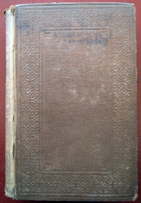 Brown cloth decoratively stamped, gilt lettering to spine. Brown endpapers. Corners are bumped and head and foot of spine are worn. Mark on front board.