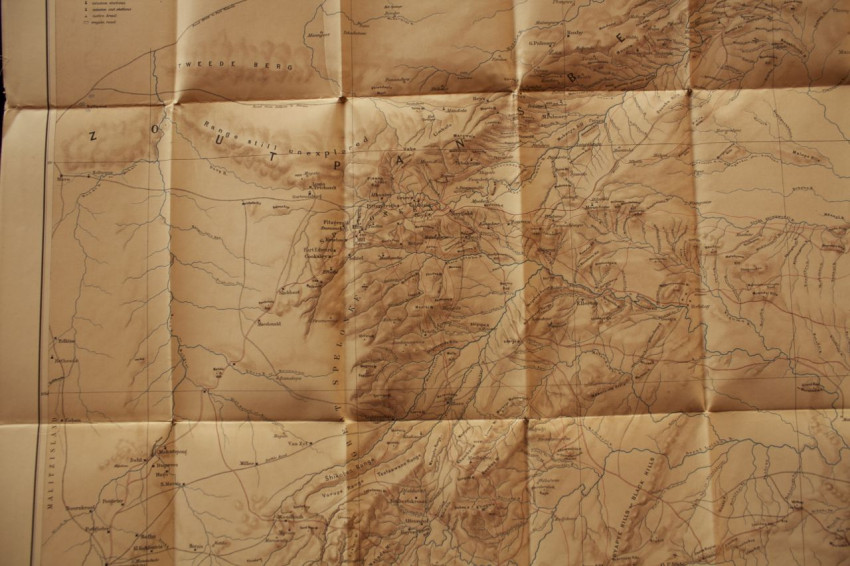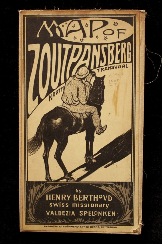 Berthoud was a Swiss missionary at Valdezia in the Spelonken. His map marks all 'white peoples' settlements', mission stations, mission out-stations, 'native kraals' and wagon roads. A red line documents every route travelled by the missionary in the northern Transvaal between 1881 and 1898.