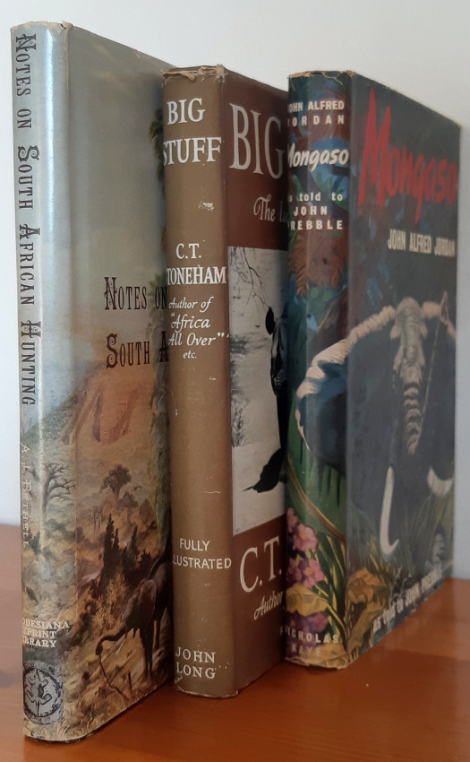 1. Stoneham, C. T.: Big Stuff: African Big Game and its Hunters (London: John Long, 1954) First edition. 8vo; original green boards, lettered in gilt on spine; pictorial dustwrapper; pp. 191, incl. index; plates. Dustwrapper a little rubbed with trace of edgewear; earlier owner's name signed on front free endpaper; moderate foxing. Good condition.