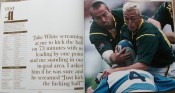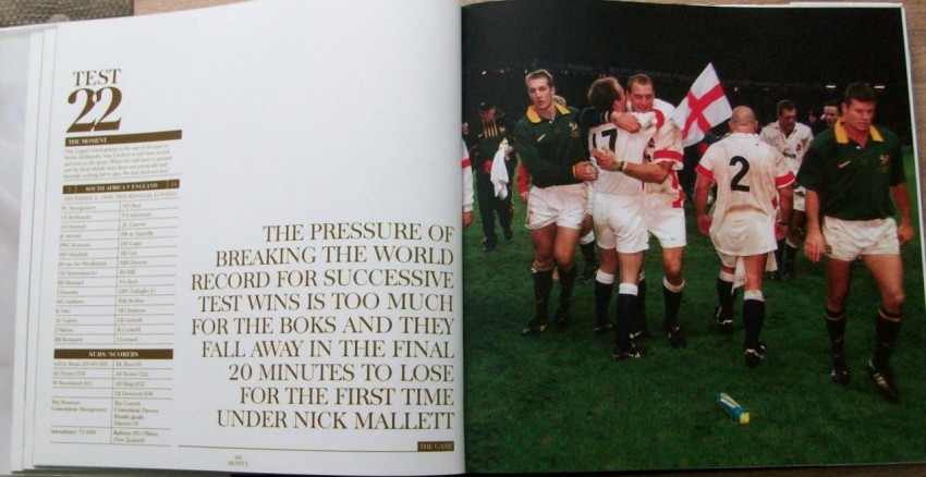 Hardback with dustcover over black boards with gilt blocking to front board. 215 pages text with numerous colour photographs and data and information of matches played and results etc.
