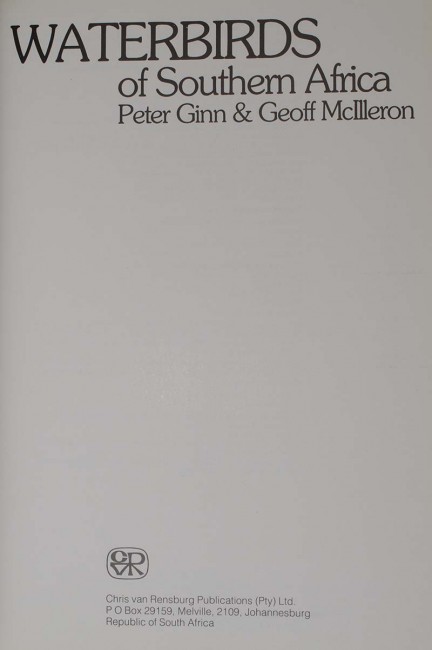 WATERBIRDS OF SOUTHERN AFRICA (Peter Ginn & Geoff McIlleron) - Hardcover Octavo, Dark Brown Quarter Leather binding/Brown paper sides, with 143 pages. Gilt titles to spine, beautiful colourful illustrations of water birds throughout the book. Binding is tight and the book is in excellent condition (As New).