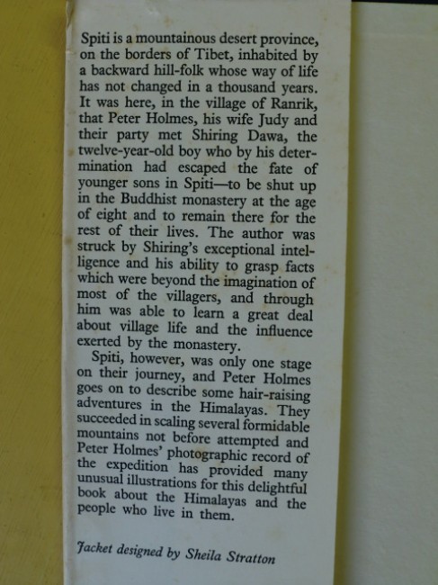 A book about the Spiti region of Tbet, including two fold-out maps (in excellent condition, the first showing The Ratang Gorge, the second of Spiti, Lahul and Kulu), and several photographs. A scarce signed and inscribed copy, reading:\'For Bob Paulsen-Forster, the first man I have met to whom I must admit defeat - he is a greater(?) live-shooter(?).\' Book condition: blue boards very good, edges faded, slight spotting in places. Holmes\' inscription is on the f.f.e-p. with a bookplate underneath reading \'Ex-Libris R.A.H.Paulsen-Forster). The jacket is good, though creased and chipped along the edges, with slight loss to head and foot of spine, and is foxed (quite heavily on the inside as well). \'Holmes was fascinated by the writings of early travellers such as Hakluyt and relished arduous journeys. Fiercely competitive, he was the wrong man to challenge to reach the top of a hill - not least because he loved betting, and usually won. He was also a keen photographer, and he wrote three books based on his explorations: Mountains and a Monastery (1958), Nigeria: Giant of Africa (1985) and Turkey: A Timeless Bridge (1988).\' [extract from article].