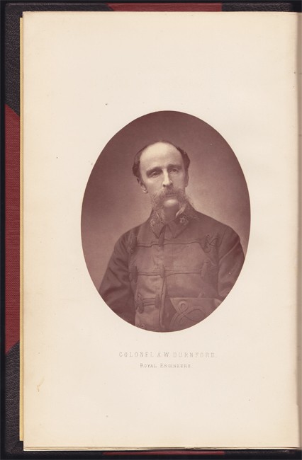 327 + 32 pages of publisher\'s catalogue, frontispiece portrait of Colonel A.W. Durnford - a laid down photograph, 2 tinted lithographic plates, 1 other photographic plate - The Camp at Bushman\'s River Pass, recent half dark brown morocco gilt, red cloth sides, the contents are crisp and bright.