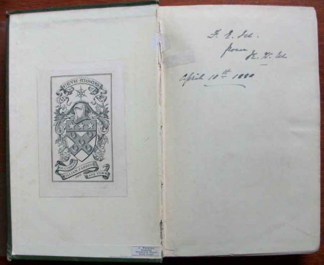 Ex Libris book plate to front paste-down- Willimam Jardine-Cape Town 1903. Ink inscription to front endpaper dated April 1880. Two plates have water stain to margin. Slightly cocked. Very clean copy of scarce publication.