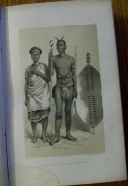 Original green cloth with floral design to top of front cover, and to spine, with gilt lettering to spine. Under a fictitious guise of a young soldier the authoress gives an account of six month's life and experience with Colonel A.W Durnford, who was to loose his life at Isandlwana in 1879. The writer was evidently an enthusiastic admirer of the gallant soldier, and remarks of him that his "truly Christian life was as much honoured by those who came in contact with its influence as his heroic death by the wortld at large. The book contains an oval Frontispiece with three further plates. Native Couple in their own Costume/ Camp at Bushman's River Pass/ Unkosaza and her attendant. ix plus 327 pages text 8 vo. 1880.