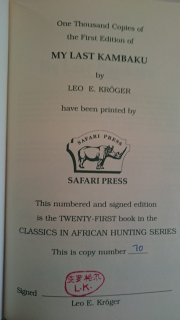 Leo Kröger (1912-2004) was born in Khabarovsk in the Russian Far East. As he says in the opening of his book, "this [being born in Siberia in 1912] condemned me to savor two great wars, a multitude of revolutions, the Soviet and Japanese occupation in Manchuria, Nazism, communism, apartheid, and the atomic bomb." He lived and hunted in Siberia, Manchuria, China, England, Germany, and, from 1953, Mozambique. "This is the story of his hunting life - with emphasis on his hunting in Africa - told in anecdotes that are at times warm, personal, witty, and above all humorous. It is the story of a man with a lifelong passion for hunting and wingshooting; it is the story of the relationship between a man and his dog and between a man and his guns; and it is also the story of the assorted colourful characters who accompanied him on the frozen marshes of Siberia as well as in the blistering forests of Mozambique. My Last Kambaku reflects the richness and fullness of Leo Kröger’s unusually long and eventful life, making this a most engaging hunting memoir."