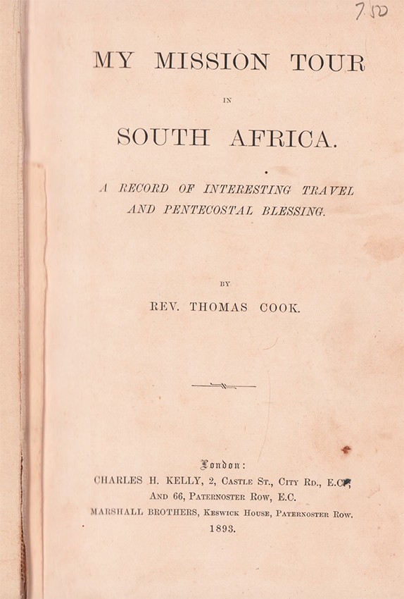 Mendelssohn (Sidney) South African Bibliography, volume 1, page 378: The author was invited by the "Quarterly Meeting of Grahamstown, 1890," to conduct Evangelistic services in South Africa. He left for the Cape in 1892, and visited and preached at the principal towns in the country. The volume contains a number of illustrations.