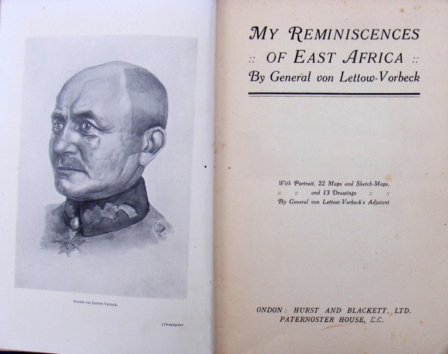 The author was the commander of the Imperial German Army in the German East Africa campaign. For four years, with a force that never exceeded 14,000 ( Germans and Africans), he held at bay a force of 300,000 British, Belgian, and Portuguese troops. Undefeated in the field, the author was the only German commander to successfully hold 'British soil' during World War I. His exploits have become legendary and his campaign is now seen "as the greatest single guerrilla operation in history, and the most successful." [Hoyt, Edwin P. The Germans who never lost. New York, 1968.]