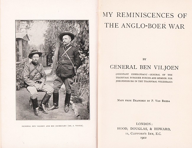 Viljoen was Assistant Commandant-General of the Transvaal Burgher Forces and member for Johannesburg in the Transvaal Volksraad. At one stage he was tipped to rise to the highest levels of the Transvaal administration, but his political career was destroyed by the irreconcilable elements in Boer society and after the war he emigrated to America. His memoirs were written while he was a P.O.W. on the island of St. Helena.