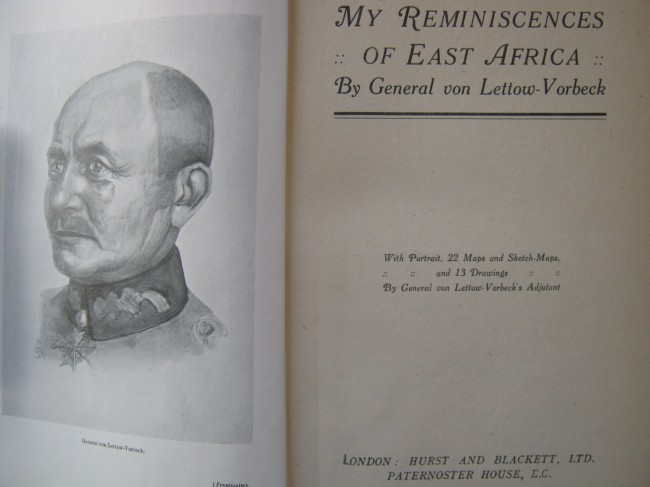 . . . \"with portrait [frontispiece], 22 maps and sketch-maps and 13 drawings by General von Lettow-Vorbeck\'s [unnamed] adjutant [who was Lieutenant Walter von Ruckteschell]\"