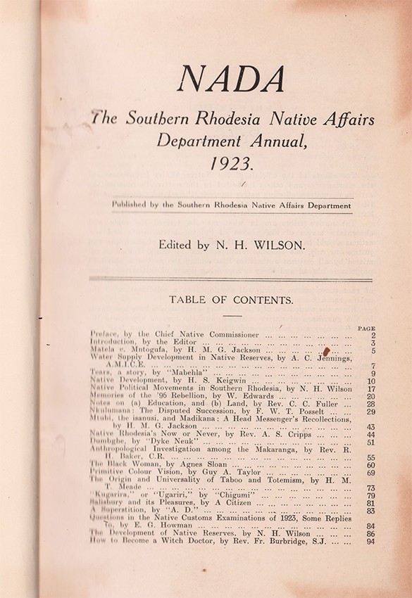 Volumes for 1964 -1978 published by the Southern Rhodesia Ministry of Internal Affairs. It ceased publication with volume 12 no 1 1979 - published by Southern Rhodesia Ministry of Home Affairs. This single issue is not included in this set.
