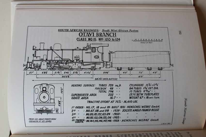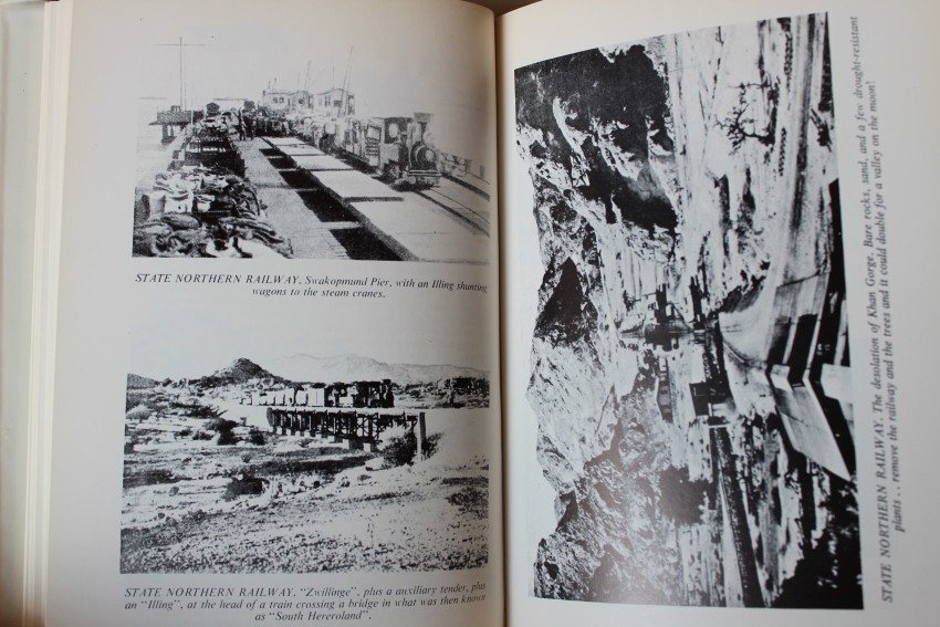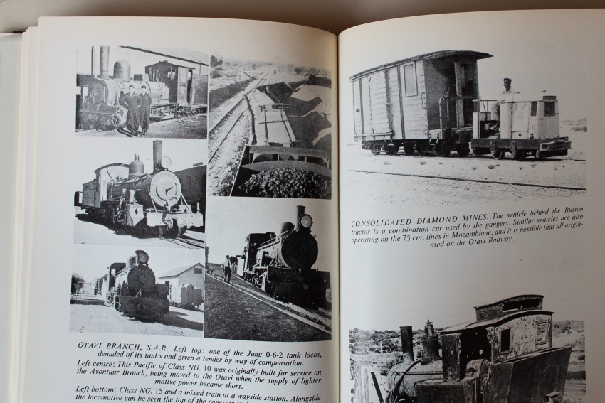 154 pages, diagrams, drawings of engines, photographs. Hardback in dimpled faux leather boards with gilt on spine. Dust jacket has a few small nicks and tears at the top. First blank loose end paper removed. One stamp of previous owner in front. SCARCE history of the railways of South-West Africa including Damaraland, Walvis Bay and Otavi, 1915-60.