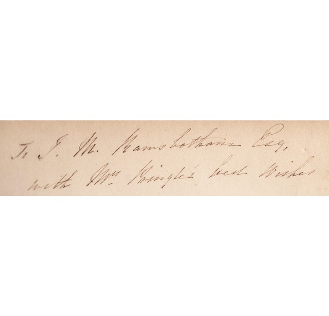 Presentation inscription from the Mrs Pringle at the head of the title page – ‘To J.M. Ramsbotham, Esq., with Mrs Pringle’s kind regards’. With the book plate of Mr.J.M. Ramsbotham on the front paste-down endpaper. Ramsbotham was a doctor in private practice in London in the 1830’s.