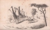 Czech (Kenneth) Bibliography of African Big Game Hunting Books 1785 -1999, page 119: While the first edition published in Bombay is scarce, the 3rd, 4th and 5th editions are the most sought after of this famous African exploration and sporting work due to the wonderful coloured plates of African game and scenery. Harris journeyed to the Meritsane River where he encountered a herd of quaggas and brindled 'gnoos' he estimated at 15,000 head. He bagged eland and was attacked by lion in the region. Crossing the Mariqua River, he hunted ostrich and white rhinoceros. Entering the Cashan Mountains, he collected elephant, the proceeded to the Limpopo Valley where he hunted buffalo and hippopotamus, with additional sport after giraffe, black rhinoceros, sable, and lion. Harris's work is valuable as it presents a detailed picture of the South African game fields prior to the growing pressure of civilization.