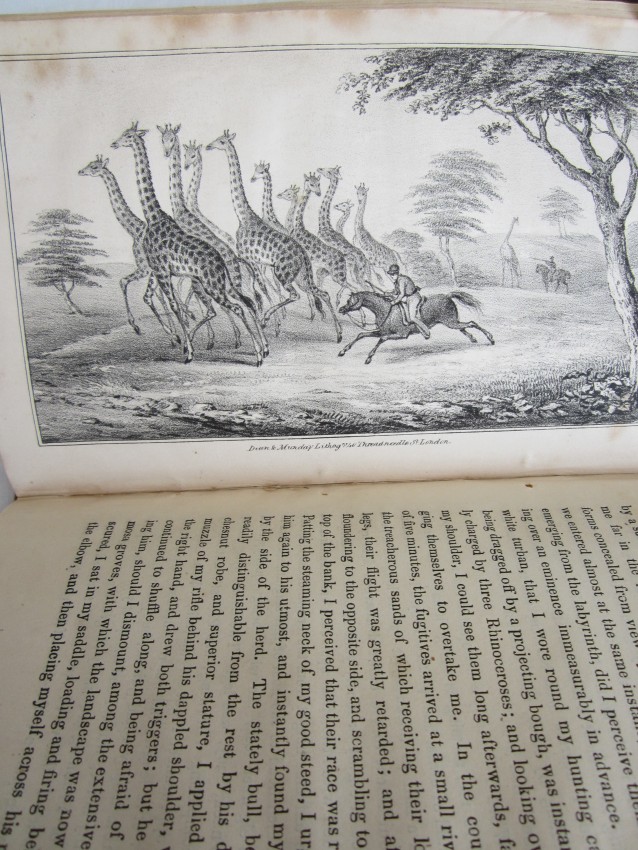"Howgego remarks that "Although primarily a hunting expedition, Harris covered much ground not seen before by Europeans, and on his way to the Vaal discovered the source of the Marique River, one of the head-waters of the Limpopo", and Mendelssohn draws attention to the "two chapters on the 'Great Trek'" and the "interesting map 'exhibiting the relative positions of the emigrant farmers and the native tribes'". Neat ink ownership inscription of John Leveson Gower on end paper & top of title page. Abbey Travel 333; Czech pp118-9; Mendelssohn I, pp.686-8; SABIB, 2, p.506. N.B. This copy appears to be a variant copy of the 1st issue. The frontispiece seems to be from the 2nd issue of the first edition (see Catalogue of Prints in the Africana Museum up to 1870, Vol. 1 H.9). The rest of the book tallies with all the points for 1 First Issue of the 1st edition (see - A Bibliography of Captain Harris's Wild Sports of Southern Africa, by Edward C. Tabler, Africana Notes and News, Volume 12, no.1, March 1956, pages 61 to 65.) including the caption on the frontispiece, the lack of captions under plates 2 & 4, the subscribers’ list on pages 399-406, the Prospectus on pages 397-98, the lack of the insert between pages 368 & 369. For clarification or further details please contact the seller.