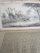 "Harris journeyed to the Meritsane River where he encountered a herd of quaggas and brindled 'gnoos' he estimated at 15,000 head. He bagged eland and was attacked by lion in the region. Crossing the Mariqua River, he hunted ostrich and white rhinoceros. Entering the Cashan Mountains, he collected elephant, the proceeded to the Limpopo Valley where he hunted buffalo and hippopotamus, with additional sport after giraffe, black rhinoceros, sable, and lion. Harris's work is valuable as it presents a detailed picture of the South African game fields prior to the growing pressure of civilization.