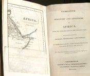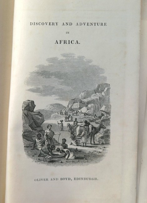 pp. 492 text, b/w illustrations, fold-out map. Rebound in black imitation leather, gilt titling to spine. Occassional very light foxing throughout, otherwise a very good copy. A detailed and illustrated (13 wood engravings by Branston) natural history of Africa with a fold out Map of Africa (on steel by W Johnston), Plans of the Routes of Park and of Denham and Clapperton.
