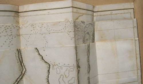Bound with a light brown calf leather, marbled paper boards and gilt decorations and titling on the spine. xxiii prelims, 420 pages, 8 illustrations as called for, including the frontispiece and the two folding charts/maps. An image is provided of only the top part of a folding chart to give an idea of the condition at the folds.