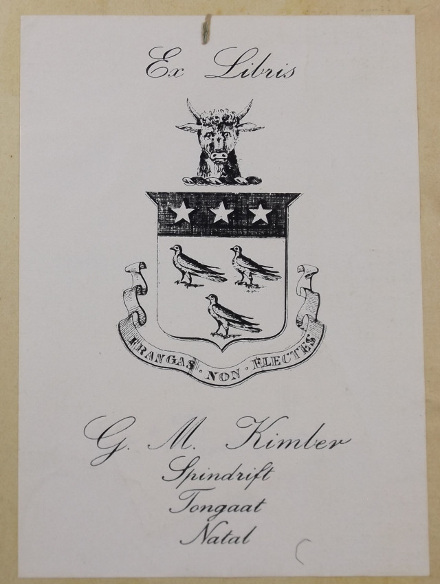 Book-plate of G. M. Kimber, Spindrift, Tongaat, Natal.