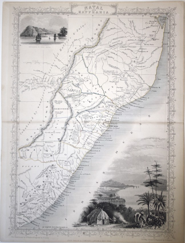 Tallis's map of Natal and Kaffraria, with vignettes of Port Natal and Durban atlas.