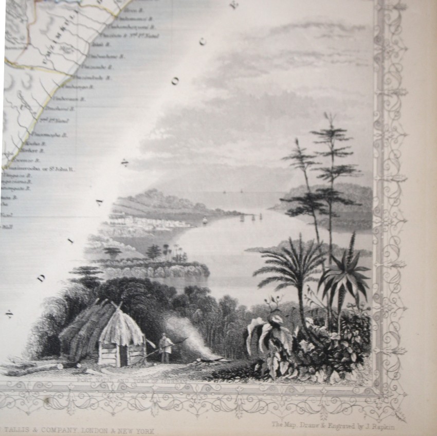 This map was printed from a steel engraving by John Rifkin for Tallis’s The Illustrated Atlas, and Modern History of the World, Geographical, Political Commercial & Statistical, which was edited by R. Montgomery Martin (London, 1851). The map was issued to coincide with the Great Exhibition of 1851 in London, Tallis’s atlas was highly regarded: both scientific and also visually attractive.: it wasone of the most decorative atlases of the nineteenth century.