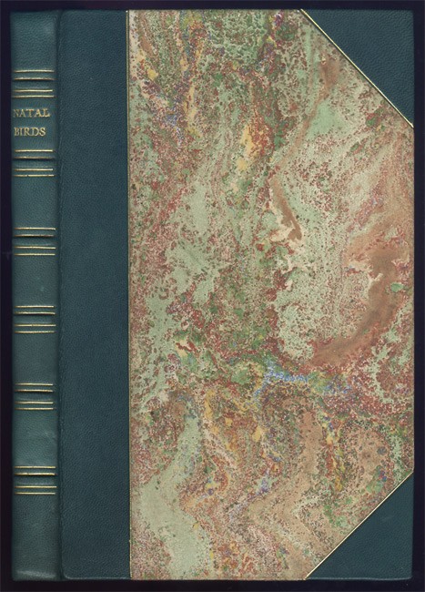 215 + vi pages appendix and index, handcoloured lithographic frontispiece by Keulemans (Stactolaema Woodwardi), recent half green morocco gilt, marbled paper sides, original blue cloth gilt cloth from the upper cover bound in at the end, bookplate of Peter Steyn on the second free endpaper, a very good copy.