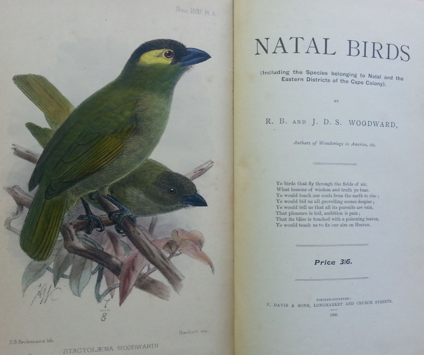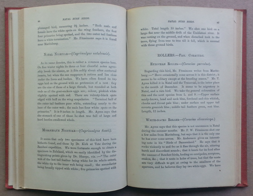 Their ornithological publication, Natal Birds of 1899, introduced 386 bird species of Zululand, the Colony of Natal and the eastern Cape Colony. It constituted the first regional list for southern Africa, and recorded the status of many species.