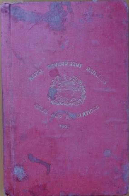 A fascinating little book which shows the working of the official mind at the beginning of the 20th century. Although these rules were for use on the Natal Government Railways, they were printed by the Central South African Railways which was started during the Anglo-Boer war. As British forces moved into the territory of the Orange Free State and the South African Republic, the Orange Free State Government Railways, the Netherlands-South African Railway Company and the Pretoria-Pietersburg Railway were taken over by the Imperial Military Railways under Lieutenant-Colonel Sir Percy Girouard. At the end of the war the Imperial Military Railways became the Central South African Railways (CSAR). With the creation of the Union of South Africa in 1910, the CSAR was merged with the Cape Government Railways and the Natal Government Railways to form the South African Railways. This copy probably came from the office of a Station Master or some other official.