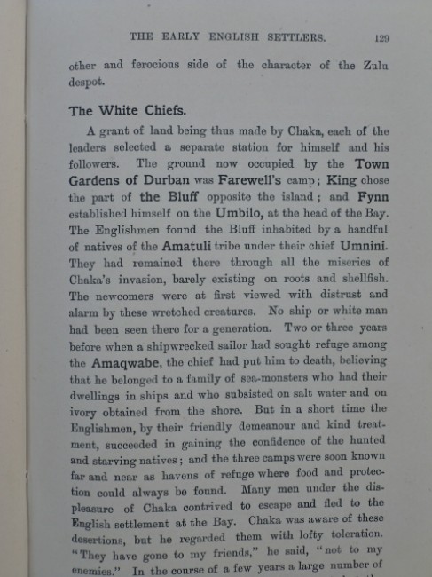 Drawn mainly from John Bird's exhaustive "Annals of Natal", and revised by the Nestor of South African history, Sir Theophilus Shepstone; 265pp. plus 9p. index.