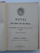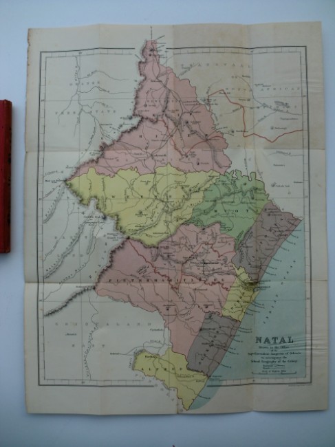 Condition: contents good but boards worn and grubby, spine faded; missing f.f.e.p., but this copy does contain the large fold-out colour map of Natal (housed in a sleeve attached to the rear paste-down). The map is good, however it is tearing through at the folds.