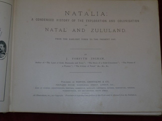 Also titled: "NATALIA: A Condensed History of the Exploration and Colonisation of Natal and Zululand From The Earliest Times To The Present Day".