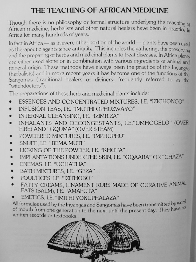 "Many of the African plant remedies that he recommends make the bulk of Zulu and Xhosa folk medicine".