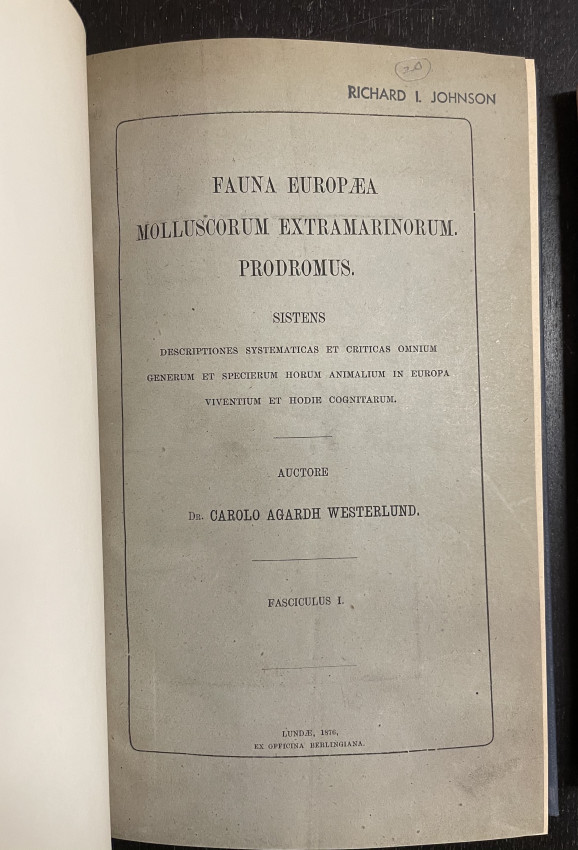 Westerlund, Carl Agardh. Fauna Europæa: molluscorum extramarinorum prodromus : sistens descriptiones systematicas et criticas omnium generum et specierum horum animalium in Europa viventium et hodie cogitarum. Lundæ: Ex officina Berlingiana, 1876.