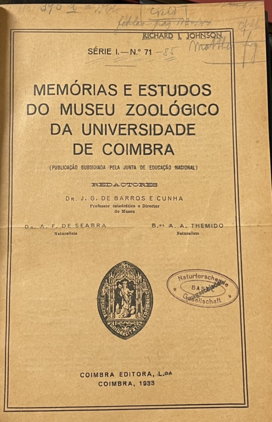 An Account of the Petrological, Botanical, and Zoological Collections Made in Kerguelen's Land and Rodriguez During the Transit of Venus Expeditions, Carried Out ... in the Years 1874-75. London: Eyre and Spottiswoode, 1879. Contains only Rodriguez’s sections, with handwritten changes to the title and contents pages. Illustrated.
