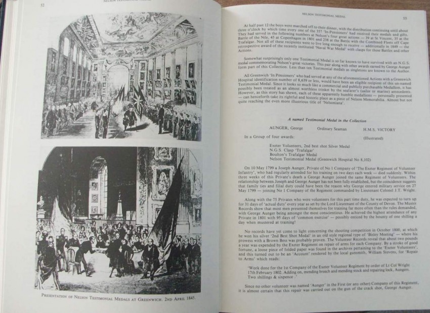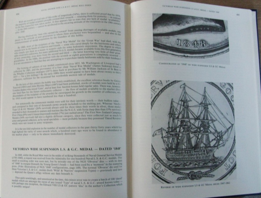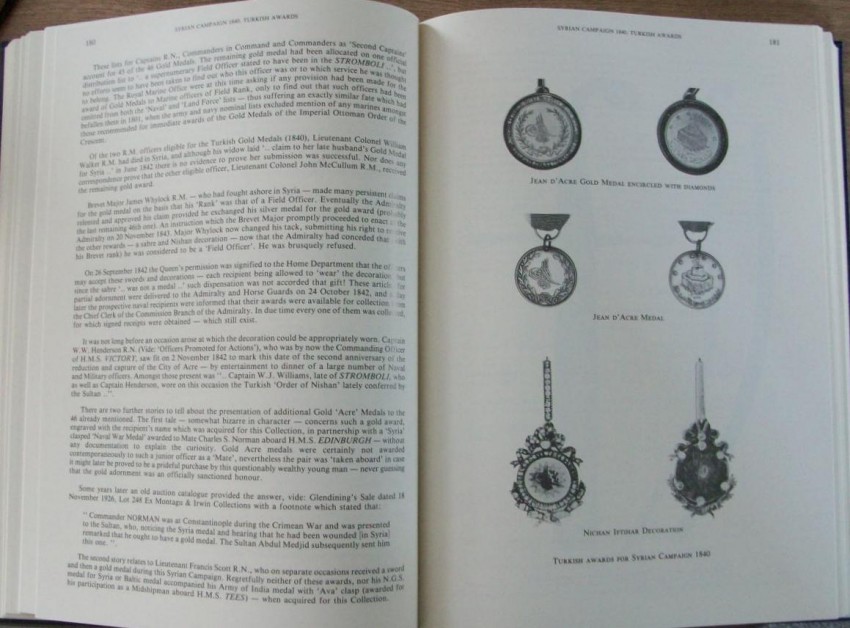 The central core to each of the numerous Sections is a catalogue of the 'medals' which cumulatively form the a limited part (1793-1856) of the entire Collection of 3,000 pieces, all awarded to officers and men of the R.N., R.M., and the Indian Continent- if one may exclude those earned by Dockyard Mateys! The whole is divided, not unexpectedly, into groupings of various Wars, Campaigns and Battles inclusive of operations such as the suppression of piracy and the slave trade, for which no medals were ever awarded. The history of awards for Gallantry, Meritorious and Long Service is told in a seperate Section, covering the evolutionary history of these awards. The final part of the book is devoted to the detailed research methods used to unearth the stories on the 'men' and their 'medals' which appear in the Work.