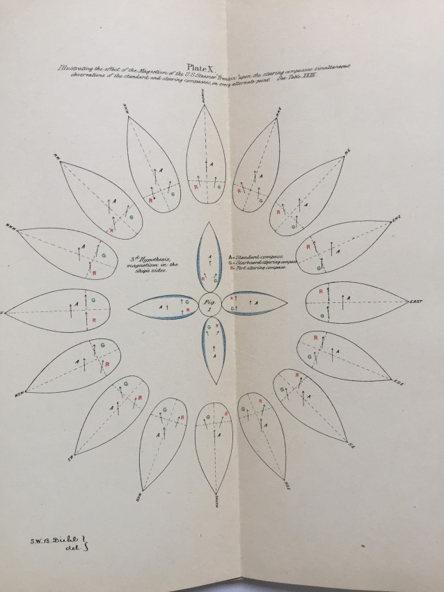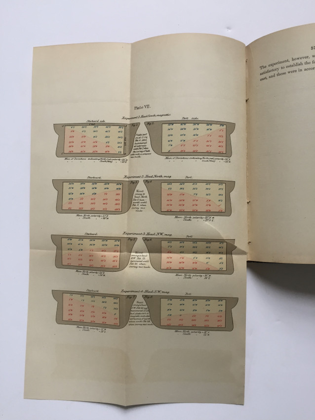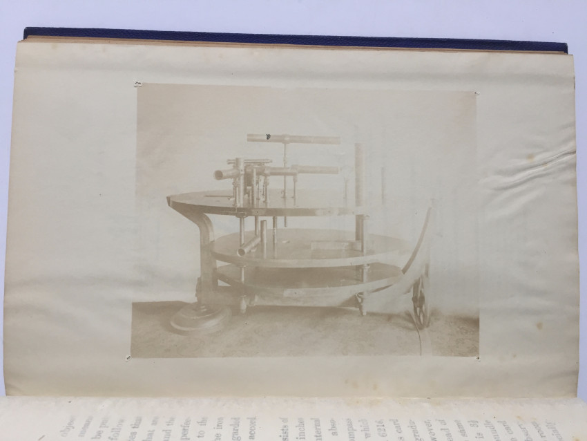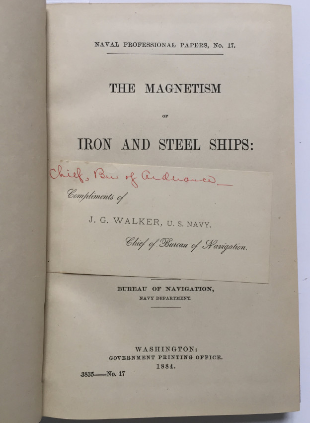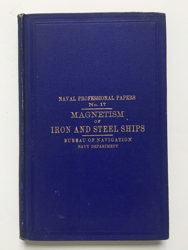 Washington: Government Printing Office, 1884. Presentation copy with inscribed compliments card of J. G. Walker, U.S. Navy, Chief of Bureau of Navigation tipped-in at title-page. Octavo, 123 numbered pages, 28 inserted plates of charts, most color printed, folding, albumen pasted down opposite page 50, publisher's blue pebbled cloth ruled in blind, lettered in gilt (moderate wear to covers with minute loss at spine ends and corners, else a clean, tight, very good copy).