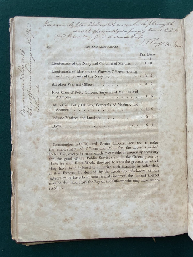 A still attractive primary source of information on the running of the Royal Navy in the decades after the death of Nelson. The ten chapters covering most aspects of service in the Royal Navy: classes of vessel, rank, military appointment, ceremonies, pay, prisoners, courts martial. With introduction to Naval Officers by Rt. Hon. John Wilson Croker.