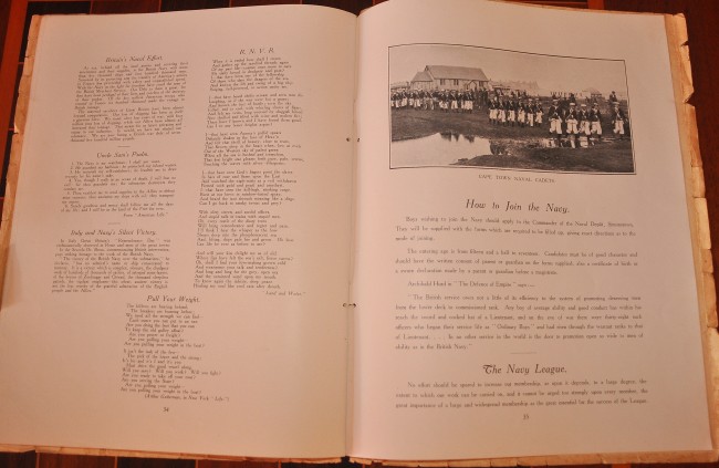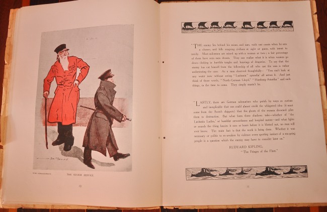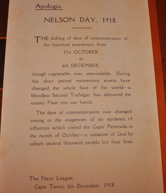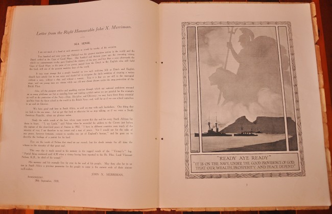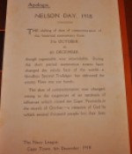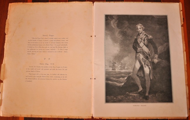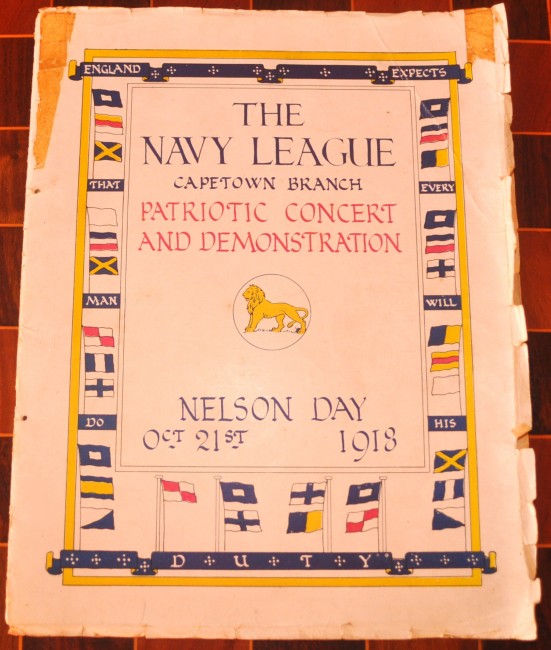 36 pages with numerous articles and illustrations. Includes Apologia letter explaining the shift of date of commemoration from 21 October to 6 December due to ‘momentous events. . . a bloodless Second Trafalgar has delivered the enemy Fleet into our hands’. Paper cover is worn with chips and tears along the edges but it has done its job preserving the contents which are clean and bright.
