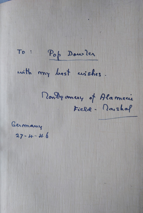 A very interesting association copy, ink presentation by Field Marshal The Viscount Montgomery to "Pop Dowler with my best wishes, Montgomery of Alamein, Field Marshal" Germany 27-4-46