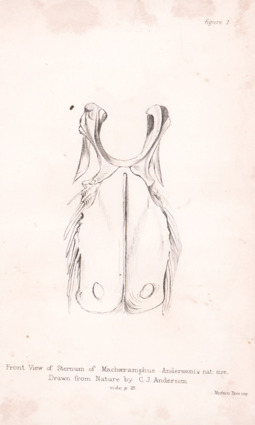R.F. Kennedy in the preface to 'The Birds of South Africa' painted by Thomas Baines. 'On returning from an expedition to the Victoria Falls with James Chapman, in 1862, Thomas Baines stayed at the home of Charles John Andersson at Otjimbingwe, South-West Africa. Andersson was contemplating writing a bird book to be called 'Avi-fauna of South-West Africa' and invited Baines to assist in illustrating the proposed work. Baines accepted the commission and remained with Andersson from August 1863 to October 1864, painting from the many sketches he had made and from bird-skins collected on his recent expedition. Andersson died before he could complete his magnum-opus on the birdlife of South-West Africa and it was only some years later that his notes were edited and published posthumously by the celebrated British ornithologist, John Henry Gurney. Baines' illustrations were not included in the new work no doubt due the high cost of reproducing the many coloured and tinted plates. It was estimated that more than £4000 would be required - a considerable sum at that time.'