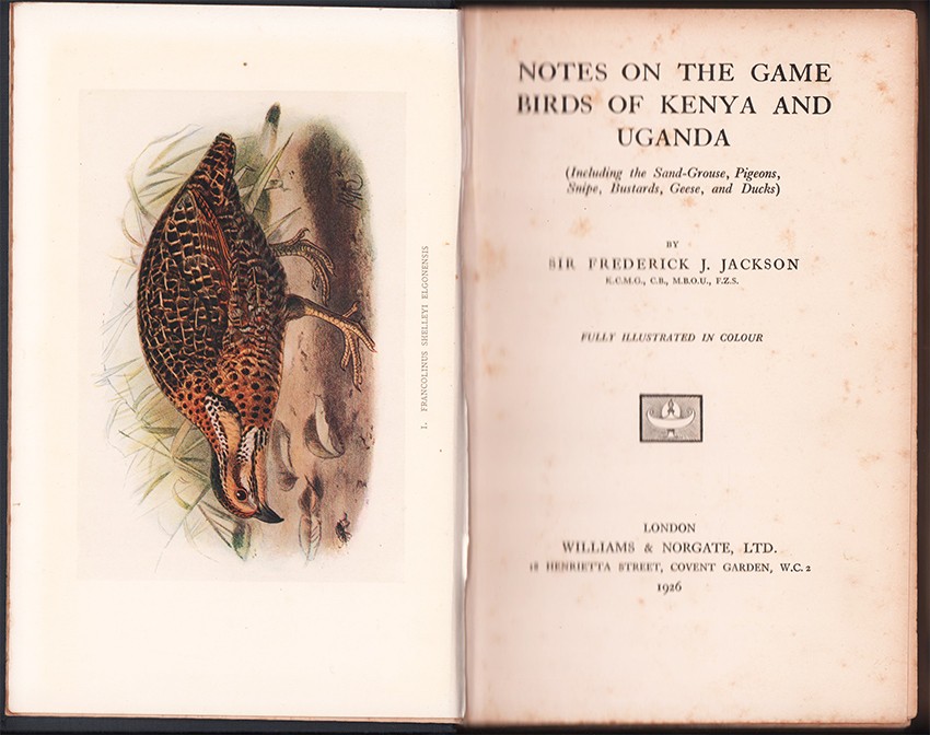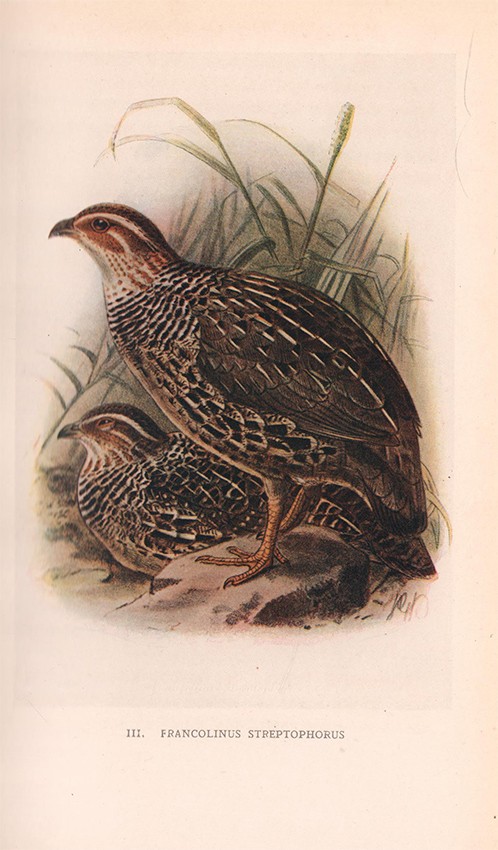 Extracted from AUK – Quarterly Journal of Ornithology volume 44 no 4 page 579: The discontinuance of Shelley's Birds of Africa before the Game Birds has been reached and the lack of any work in English on the habits of these birds in Central Africa were responsible for the preparation of this present work.