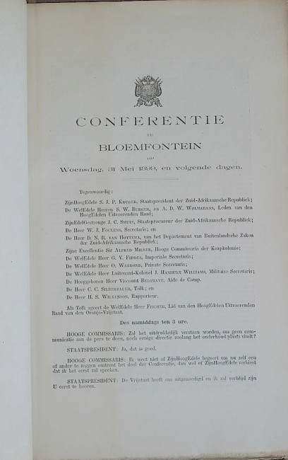 President Steyn of the Free State instigated the \"Bloemfontein Conference\" between ZAR President Paul Kruger and Sir Alfred Milner, High Commissioner of the Cape Colony, in an attempt to prevent war.