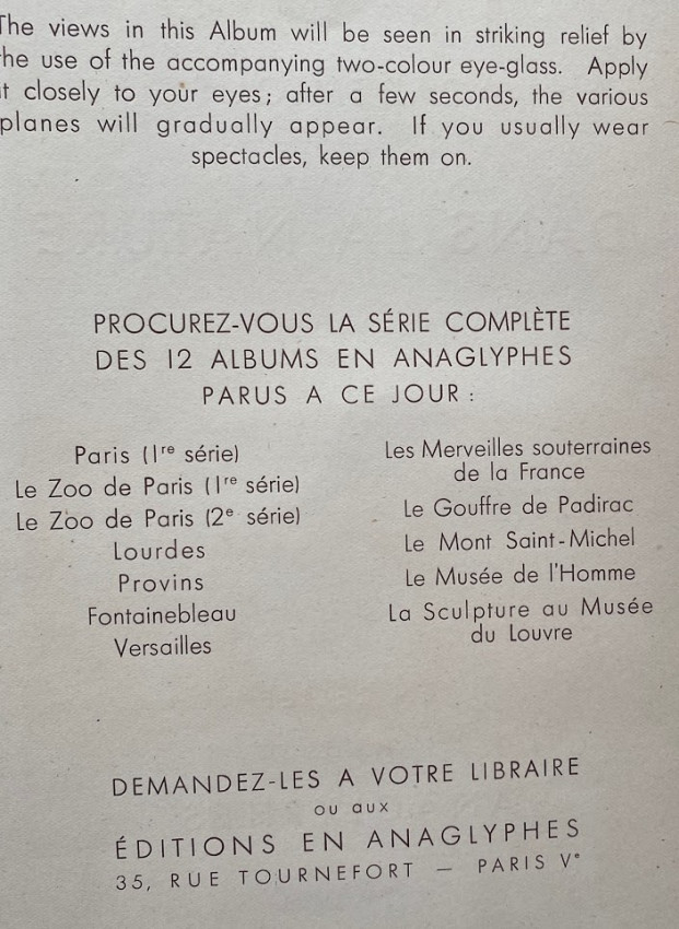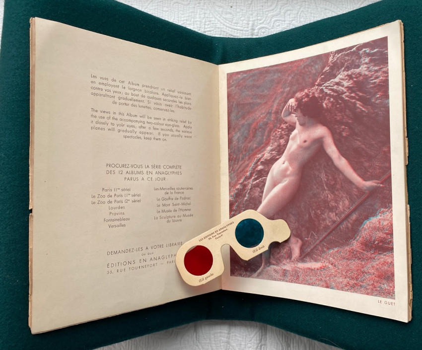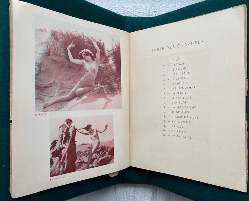 An extraordinary work.The '1' on the upper cover is an indication of the album's place as one of 12 'albums en Anaglyphes' that were published: the full series is listed at the front. This seems to have been the only one to feature nudes?